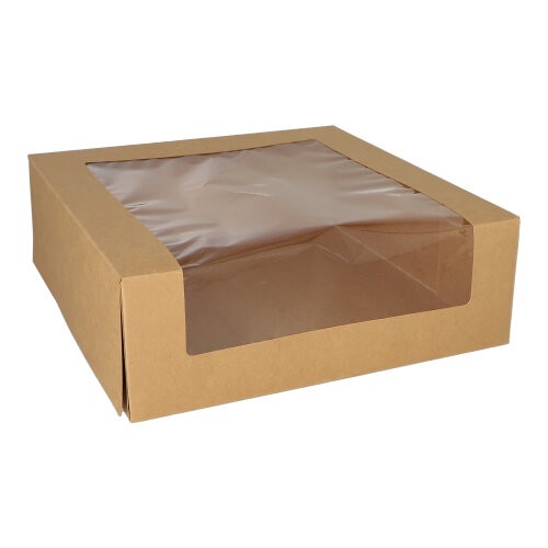 Caja pastel Kraft c/ventana PLA 10x30x30 cm 25 Un cantidad